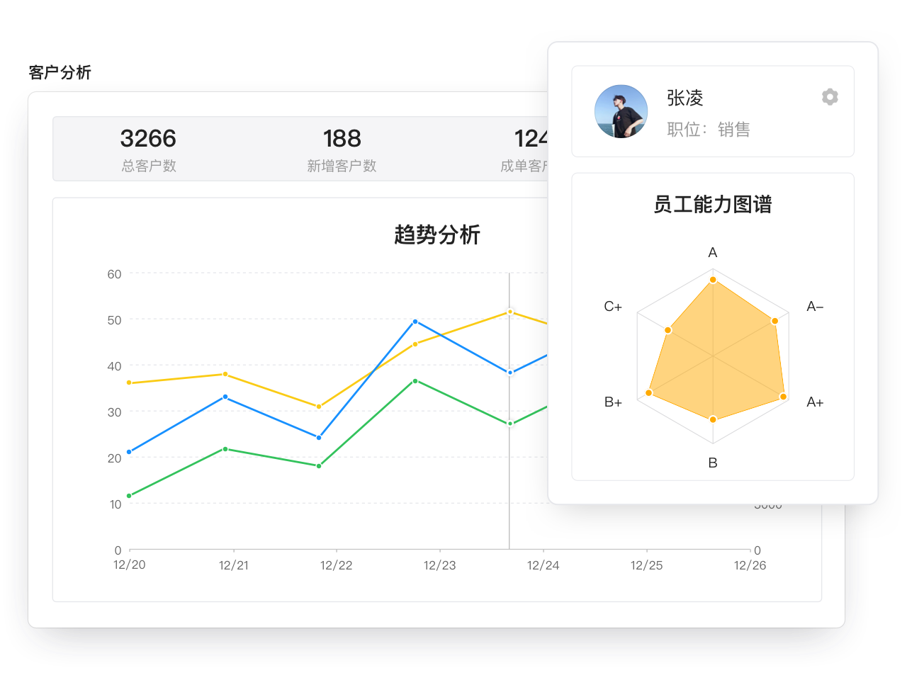 通过员工能力图谱+ 员工排行,帮助每一位员工更加了解自己;